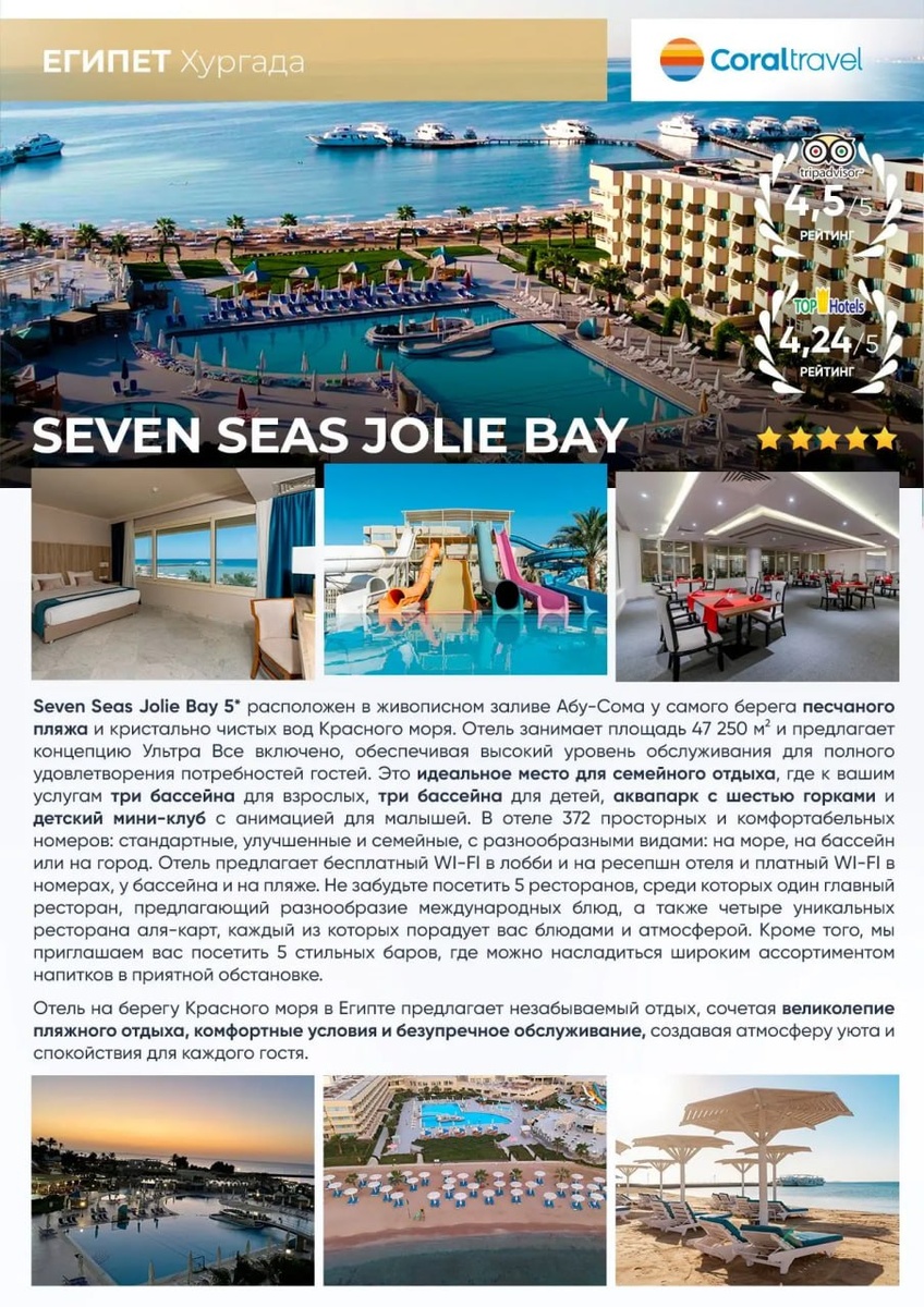 , по отелю SEVEN SEAS JOLIE BAY 5⭐️ UALL Пример, вылет из Самары 14.05 на 10 дней: цена 146 314 руб. за двоих взрослых 182 582 руб. за 2 взрослых + 1 реб 239 115 руб. за 2 взрослых + 2 реб