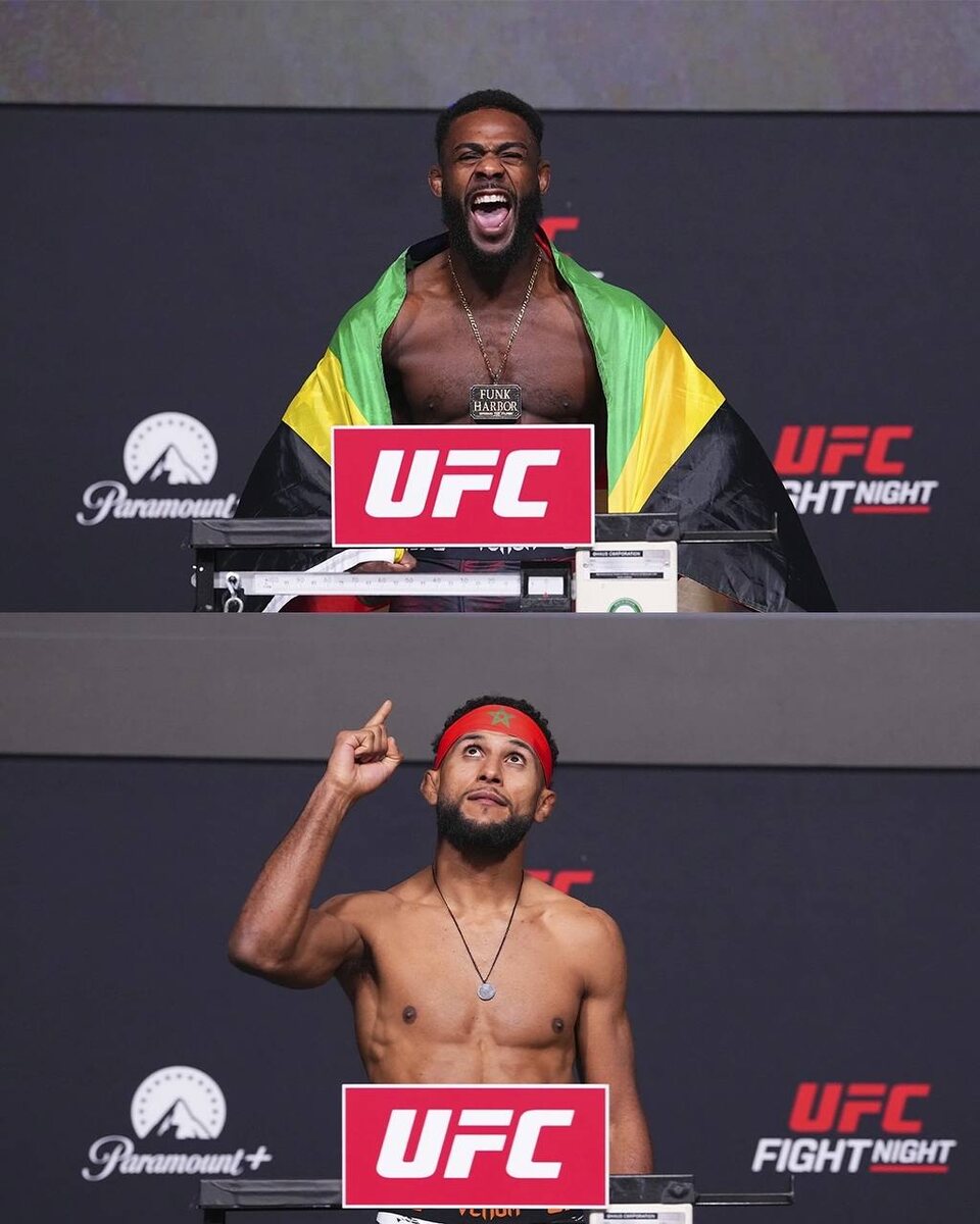 В Лас-Вегасе прошла официальная процедура взвешивания предстоящего ивента. Все бойцы успешно уложились в лимиты своих категорий, а значит — завтра нас ждет полный кард без отмен! Главные поединки: 🔸 Алджамэйн Стерлинг (66.22 кг) – Юссеф Залал (65.99 кг) 🔸 Норма Дюмонт (61.46 кг) – Жоселин Эдвардс (61.46 кг) 🔸 Рафа Гарсия (70.31 кг) – Александр Эрнандес (70.53 кг) 🔸 Дэйви Грант (61.46 кг) – Адриан Луна Мартинетти (61.46 кг) 🔸 Раони Барселос (61.69 кг) – Монтел Джексон (61.46 кг) 🔸 Маркус Алмейда (114.53 кг) – Райан Спэнн (119.75 кг) Предварительный кард: 🔹 Эрик МакКонико (84.37 кг) – Родольфо Виейра (84.14 кг) 🔹 Седрик Дюма (83.46 кг) – Джексон МакВей (83.91 кг) 🔹 Мишель Монтегю (61.46 кг) – Майра Буэно Сильва (61.69 кг) 🔹 Коди Дёрден (61.46 кг) – Жафел Фильо (61.46 кг) 🔹 Лукас Бреннан (70.31 кг) – Фрэнсис Маршалл (70.53 кг) 🔹 Макс Гриффин (77.34 кг) – Виктор Валенсуэла (77.11 кг) 🔹 Талита Аленкар (52.62 кг) – Джулия Поластри (52.16 кг)