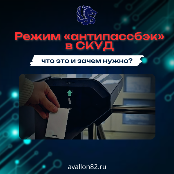 Антипассбэк (AntiPassBack) — функция системы контроля и управления доступом (СКУД), которая запрещает повторный проход в одном направлении по одному идентификатору (карте, брелоку, биометрическим данным), пока не зафиксирован выход из зоны. Функция решает несколько ключевых задач: Режим антипассбэка особенно актуален на объектах с повышенными требованиями к безопасности: Итог: антипассбэк — важный инструмент для усиления безопасности и контроля доступа. Он делает систему СКУД более надёжной, исключая злоупотребления и обеспечивая точный учёт перемещений на объекте.