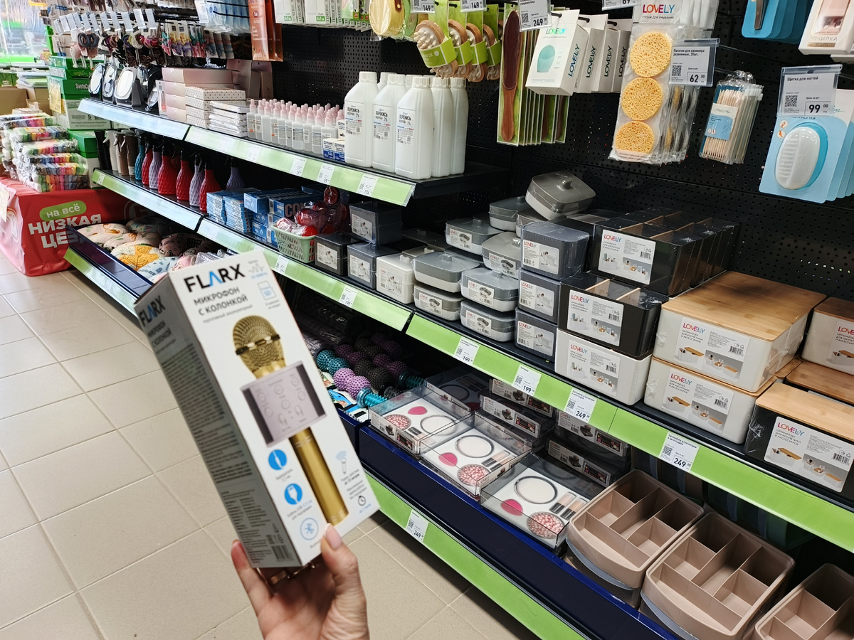 Этот беспроводной микрофон объединяет мини-колонку, караоке, режимы изменения голоса, радио и селфи-кнопку. Можно петь любимые песни, экспериментировать с голосом и устраивать настоящие концерты дома или на празднике. Микрофон поддерживает подключение по Bluetooth. Цена 449 рублей.
