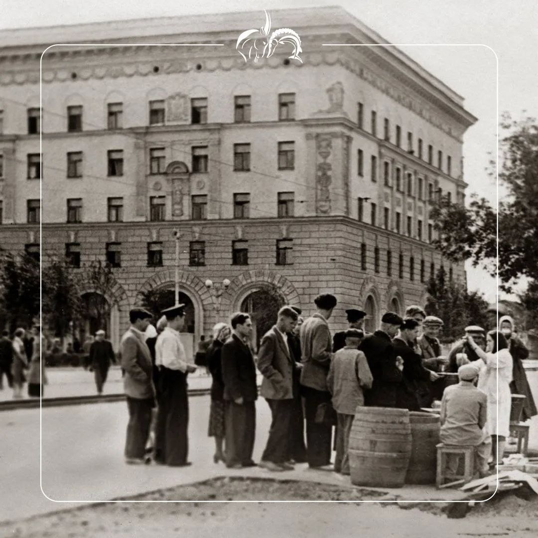 Машиной времени для Козы и Стерляди сегодня стала старая открытка. Подруги выстроили маршрут и вот он, дом со звездой на фасаде. Догадались? Самарская площадь. Типовые для своего времени жилые дома и сквер посередине. Ансамблевая застройка - одна из главных «фишек» сталинского ампира. Кстати, в генплане середины 1930-х годов «Большой Куйбышев» именно эта территория должна была стать главным центром города. Звездой отмечен знаменитый «дом офицерского состава ПриВО», с отдельными - о, чудо! - а не коммунальными квартирами. А вот что объединяло и генералов, и простой люд - так это очередь за квасом на углу. Место силы для типичного летнего Куйбышева. #Коза_в_городе