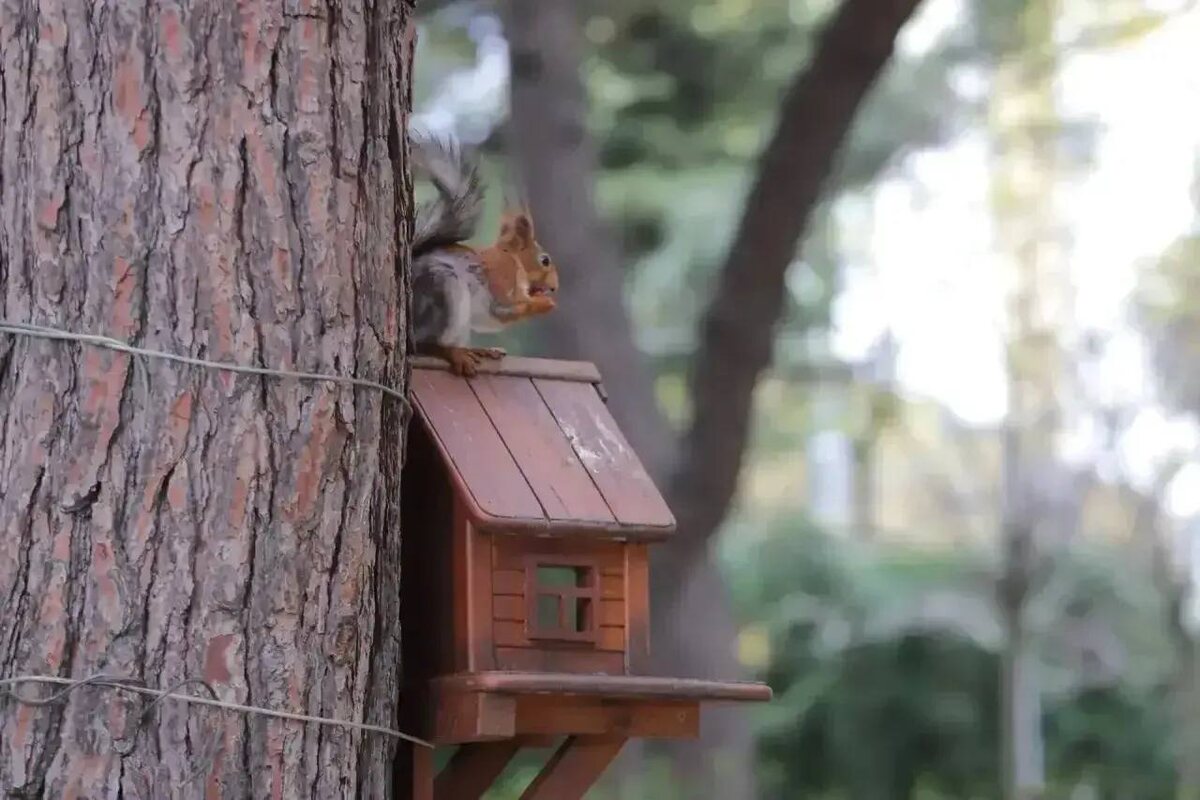 Для белок на набережной Геленджика обновляют и устанавливают кормушки