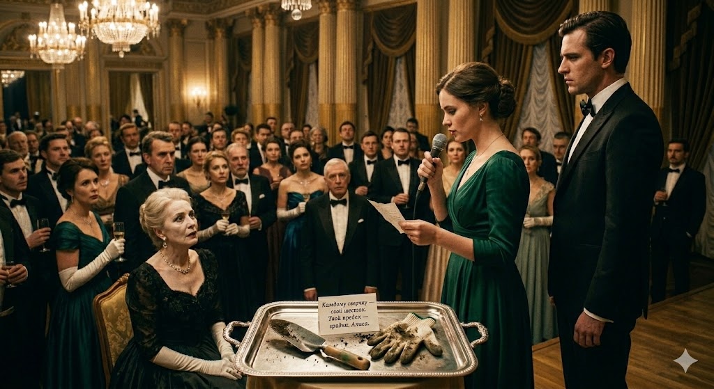 Она не заплакала. Она медленно подняла голову и посмотрела прямо в глаза Элеоноре. Затем Алиса взяла записку, встала из-за стола. Зал замер в ожидании. Максим, побледнев, попытался взять ее за руку: