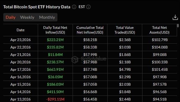 🪙 Притоки в спотовые Bitcoin ETF продолжаются уже 8 дней подряд