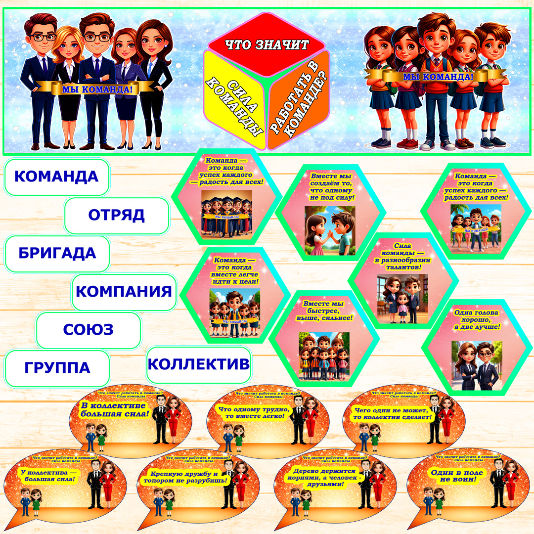 Работа в команде — это не просто совместное выполнение задач. Это искусство слышать и понимать друг друга, доверять и поддерживать, даже когда возникают трудности. Настоящая команда — это живой организм, где успех каждого становится общей победой, а ошибка — поводом стать сильнее вместе.