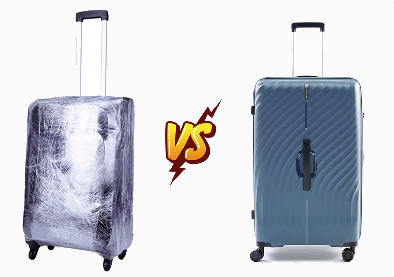 Комментарий: пленка не сделает чемодан крепким и надежным. Прочность корпуса определяется только и исключительно материалом корпуса. Чемоданы изготавливают из текстиля, ABS-пластика, поликарбоната или полипропилена.