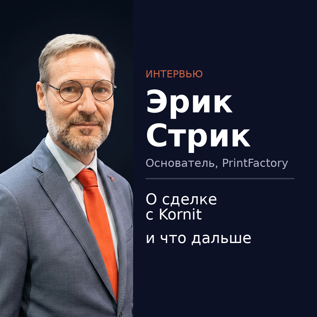 «Я не планировал продавать компанию». Эрик Стрик — о сделке с Kornit Kornit купила PrintFactory. Что рынок понял правильно — и что осталось за кадром. Я поговорил с Эриком Стриком, CEO и основателем PrintFactory. Он рассказал об истории с GMG, почему органический рост упирается в потолок и что реально изменится в продукте — и когда. Не пресс-релиз. Живой разговор. Статья тут - https://belokurov.ru/intervyu-s-erikom-strikom-osnovatelem-printfactory-posle-prodazhi-kornit/ Я вчера разместил этот текст на английском в LinkedIn вчера, уже десятки тысяч просмотров, лайки комментарии как игроков рынка, так и всего ТОП менеджмента Kornit. Все жду продолжения. Также теперь все размещаю и в Максе — https://max.ru/join/J4AVJYsMC_wai_cDUn0YczQw9cipS9-YPPG-fFx78Ng