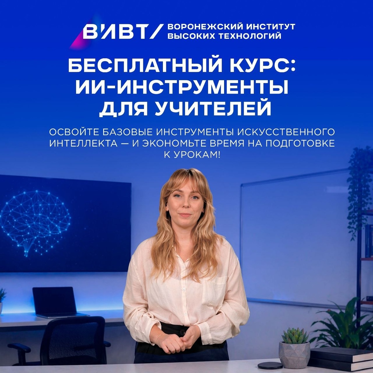 Но чтобы технологии работали на человека, а не вместо него, важно понимать их возможности и границы. Воронежский институт высоких технологий приглашает учителей на бесплатный электронный курс «Инструменты ИИ»! Курс создан в рамках: Национальной стратегии развития ИИ до 2030 года (Указ Президента № 490); Федерального проекта «Искусственный интеллект» национального проекта «Экономика данных». Что вы получите: ✔ Понимание принципов работы ИИ‑систем — без сложных терминов, доступно и по делу. ✔ Практические примеры из быта, учёбы и бизнеса: увидите, где ИИ действительно полезен, а где требуется критическое мышление. ✔ Развенчание мифов об ИИ — избавитесь от страхов и стереотипов. ✔ Инструменты для автоматизации рутины — освободите время для творчества и индивидуального подхода к ученикам. ✔ Навыки анализа данных — научитесь извлекать пользу из цифровых инструментов. Кому подойдёт курс: учителям всех предметов; методистам и педагогам‑новаторам; всем, кто хочет идти в ногу со времене
