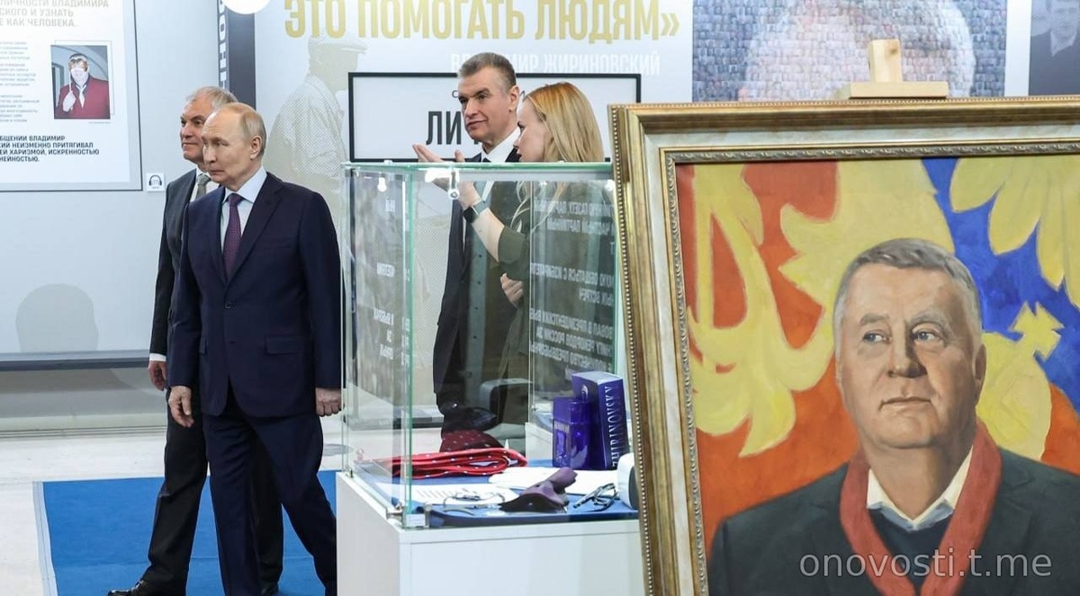 Путин посетил в Москве выставку, посвящённую Жириновскому