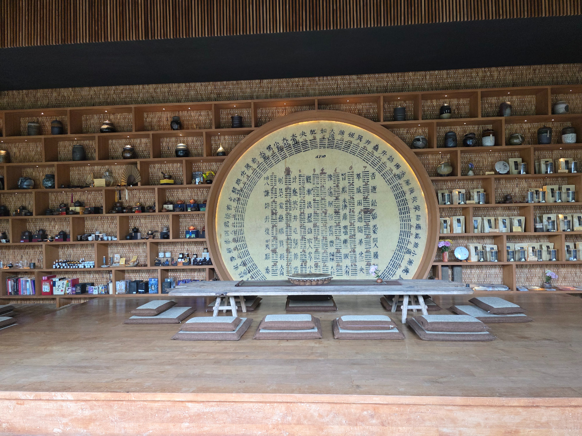 Круг с иероглифами посередине зала — это **И-Цзин**. Книга перемен. Один из древнейших текстов человечества. 64 гексаграммы — все возможные состояния мира и человека в нём. Каждая — момент. Каждая — переход.