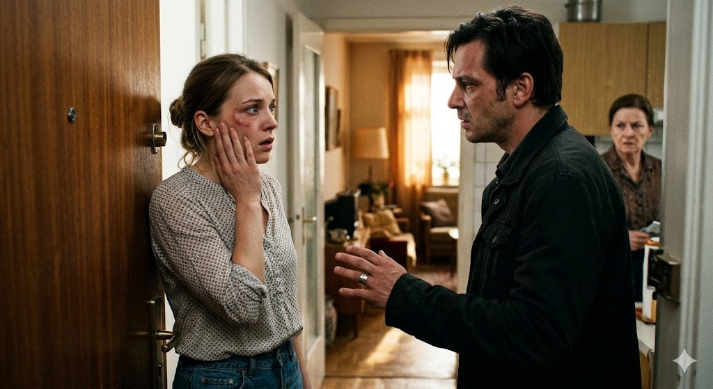 Удар был не просто сильным. Он был оглушающим, хлестким, тяжелым. Мужская рука с размаху опустилась на мое лицо. Тяжелое обручальное кольцо больно царапнуло скулу, а в голове будто лопнула струна. От неожиданности и силы удара я отлетела назад, больно ударившись спиной о дверной косяк. В глазах потемнело, во рту мгновенно появился солоноватый привкус крови — я прикусила щеку.