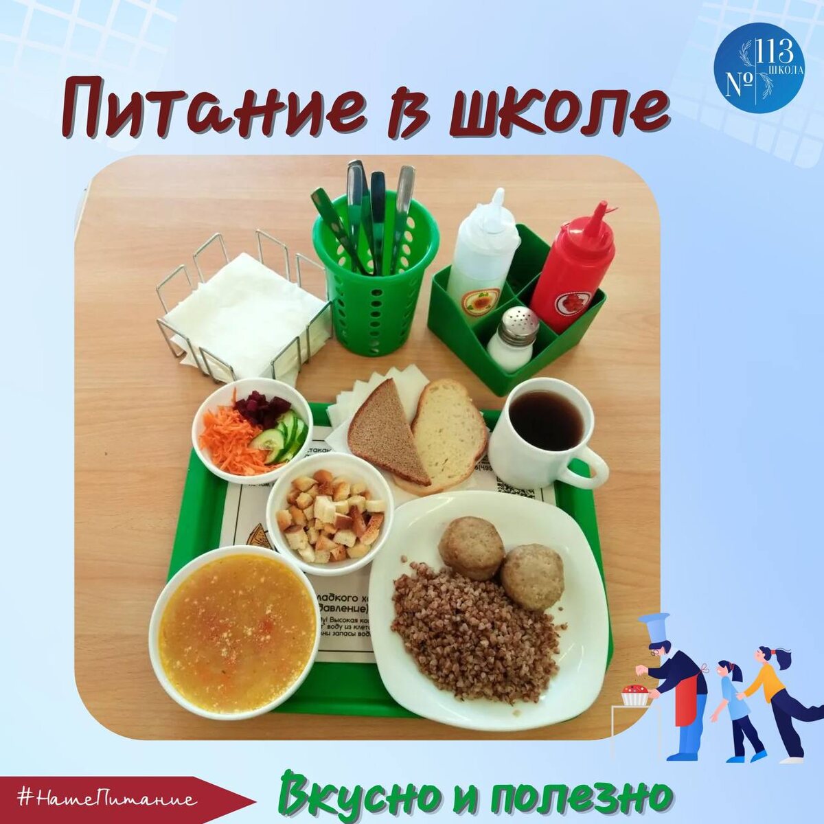 🙂 📋Сегодня в меню: 🔸Огурцы, свекла, морковь; 🔸Бульон куриный с зеленью / Суп Минестроне 🔸Гренки; 🔸Митболы; 🔸Гречка; 🔸Компот ягодный / Чай; 🔸Хлебная корзина. Актуальное меню с подробным описанием каждого блюда, можно посмотреть на официальном сайте нашей школы ⬇ sch113uz.mskobr.ru/roditelyam... #ДОНМ #Школа113 #НашеПитание
