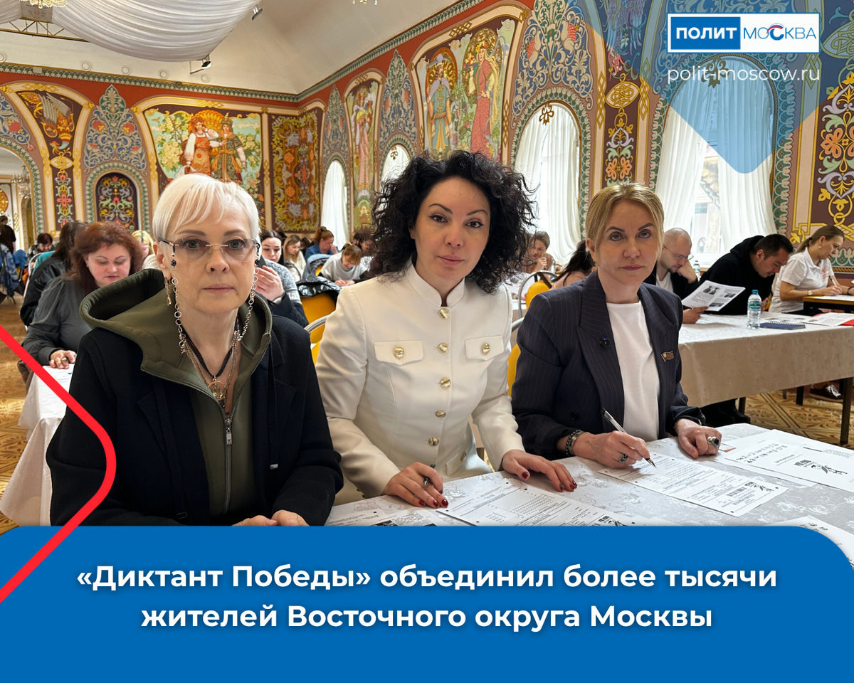 Одной из крупнейших площадок в Восточном округе стал Кремль в Измайлове, где «Диктант Победы» прошёл совместно с акцией «Письмо Герою». При поддержке Почты России участники писали тёплые послания ветеранам и военнослужащим. Всего в мероприятиях приняли участие более тысячи жителей ВАО. Для гостей был оформлен зал в боярском стиле. Почётными гостями стали депутаты Мос