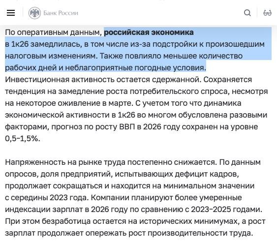 Банк России объяснил спад в первом квартале 2026 года. Среди причин: меньше рабочих дней и плохая погода. Да, именно так.Потому что календарь неудачно сложился и погода подвела. При этом сам ЦБ признаёт: снижается потребительский спрос и инвестиции остаются сдержанными. Но в заголовке — погода. Смотрите, какая удобная модель получается: если что-то идёт не так — виноват либо календарь, либо климат. Селлерам остаётся только надеяться на хорошее лето. Если у вас плохо прогружаются файлы, все посты также доступны в MAX