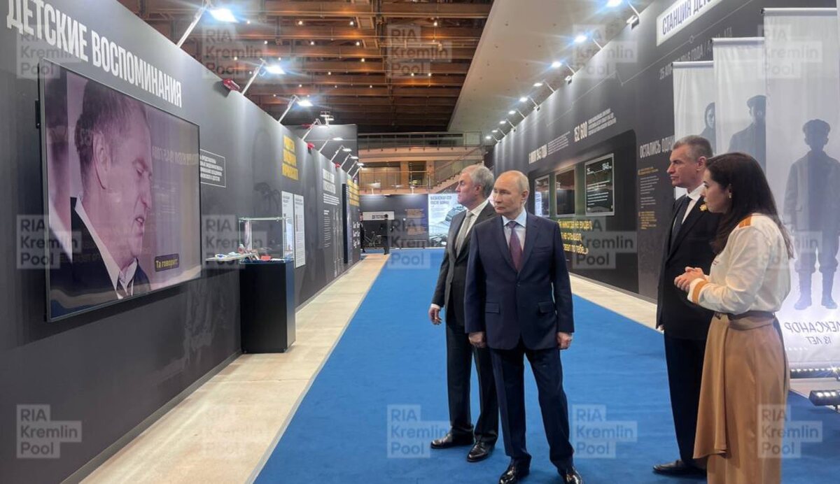 Президент России Владимир Владимирович Путин вместе с Председателем Госдумы Вячеславом Викторовичем Володиным приехали в Манеж на выставку