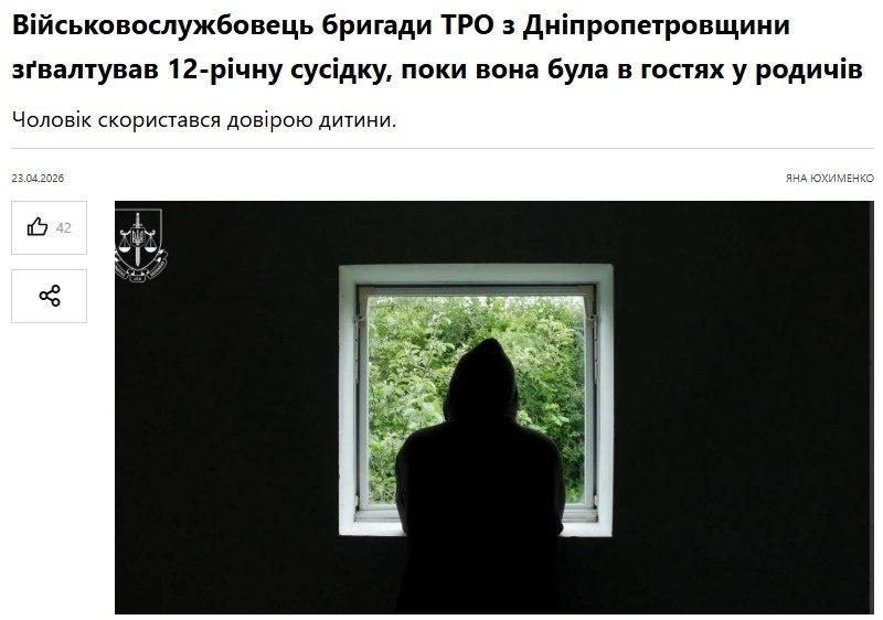 Военнослужащий 103 обр ТрО изнасиловал 12-летнюю соседку, пока она была в гостях у родственников