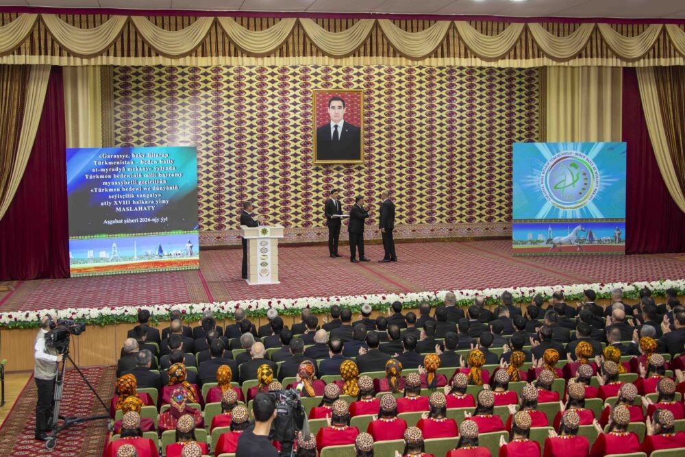 В Туркменском сельскохозяйственном университете имени С.А. Ниязова прошла XVIII Международная научная конференция «Туркменский скакун и мировое искусство коневодства», приуроченная к Национальному празднику туркменского скакуна. Об этом сообщает МИЦ Туркменистана. Перед началом конференции участники осмотрели выставку, посвященную ахалтекинским лошадям: экспонировались работы в жанрах изобразительного и декоративно-прикладного искусства, ковры, ювелирные изделия и фотографии. В ходе пленарного заседания выступающие подчеркнули особую значимость мероприятия в год, объявленный в стране «Независимый нейтральный Туркменистан – родина целеустремленных крылатых скакунов» и ознаменованный 35-летием суверенитета. Участники конференции отметили, что ахалтекинская порода, признанная мировым достоянием, включена в Репрезентативный список нематериального культурного наследия человечества ЮНЕСКО. На конференции зачитали указ Президента Туркменистана Сердара Бердымухамедова о присвоении почетного зв