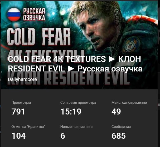 клон резидента. Следующий стрим в понеделник. Постараюсь выложить вам побольше сборок за это время, а так же буду на фестивале GAMEДНИ и выложу вам фоточки с него. Наверняка кого-то удастся поймать из знакомых вам или мне лиц. В понедельник я попробую еще одну версию COLD FEAR поскольку нужна была помощь родителям в этот раз, я не успел её оттерстировать. Если будет возможность увидите всю красоту 4К текстур, с русиком, 60фпс и со всеми крутыми настройками!