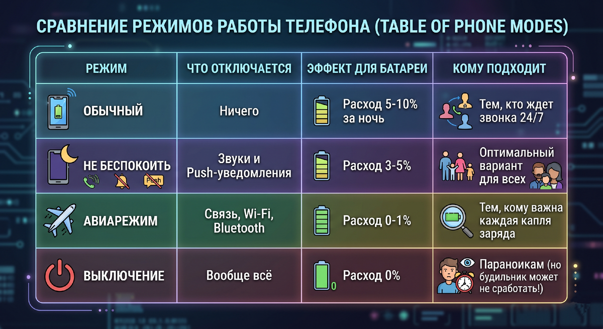 Вы выключаете свет, кладете телефон на тумбочку и засыпаете. Вам кажется, что девайс тоже ушел в астрал, но на самом деле в этот момент внутри него закипает самая бурная деятельность. Пока вы видите сны, ваш Android «пашет» во вторую смену. Разбираем «под капотом», почему смартфон к утру теряет 5–10% заряда и кому он «строчит отчеты», пока вы спите. В идеальном мире смартфон должен уходить в Deep Sleep (режим глубокого сна, когда частота процессора падает до минимума). Но в реальности приложения постоянно дергают его за рукав. Это называется Wakelocks (активаторы бодрствования — механизмы, которые не дают процессору «уснуть» или заставляют его проснуться для выполнения задачи). Чем конкретно занят ваш «железный друг»: Многие боятся оставлять телефон на проводе до утра. Мол, «перезарядится» и взорвется. Как на самом деле: Современные контроллеры питания — ребята умные. Они используют Адаптивную зарядку (функция, которая ограничивает заряд на 80% и «добивает» оставшиеся 20% точно к вашем
