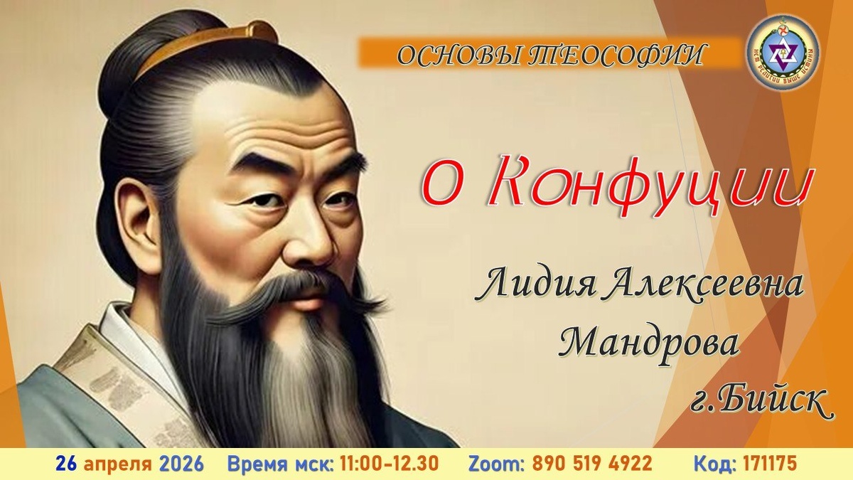 🌕⭐️💥В это воскресенье, 26 апреля 2026 года, в рамках проекта «Основы теософии» состоится беседа "О КОНФУЦИИ