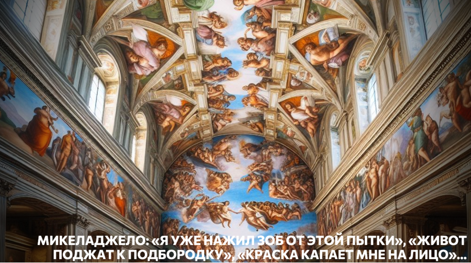 В 1509 году Микеланджело даже пишет сатирическое стихотворение другу Джованни да Пистойя, и это один из самых точных документов о процессе работы.