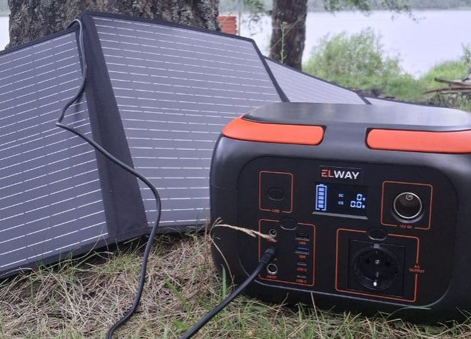 портативная электростанция + солнечная панель. Система очень простая: электростанция накапливает энергию
