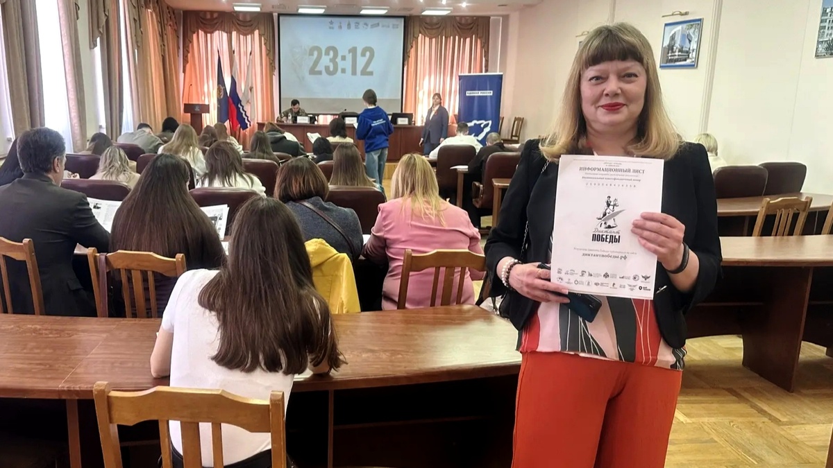 Сегодня 24 апреля приняла участие в восьмой Международной исторической акции «Диктант Победы» в конференц-зале администрации города Астрахани. Ответила на 25 вопросов, посвящённых советским военачальникам, историческим подвигам воинов Красной Армии в Донбассе и Новороссии и юбилейным датам, приходящимся на 2026 год. В этом году диктант посвящён 85-летию начала Великой Отечественной войны и 130‑летию со дня рождения маршала Советского Союза Георгия Константиновича Жукова.