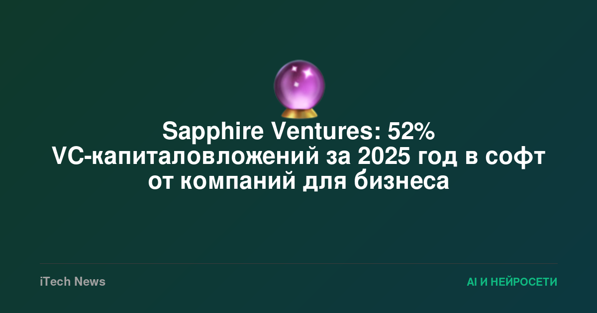 Sapphire Ventures: 52% VC-капиталовложений за 2025 год в софт от компаний для бизнеса