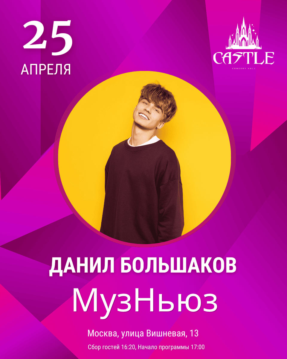 25 апреля 2026 года Москва станет центром масштабного музыкального события — фестиваля «МузНьюз», который пройдёт в Castle Concert Hall. Это вечер живой музыки, ярких артистов и сценической энергии, где каждый элемент работает на атмосферу большого шоу. И ключевую роль в этом вечере исполнит Данил Большаков — актёр и ведущий фестиваля. Данил Большаков — российский актёр, начавший карьеру в детских проектах и постепенно сформировавший устойчивую актёрскую школу и узнаваемый профессиональный почерк. Его работы в кино и сериалах отмечаются точностью, эмоциональной глубиной и вниманием к внутреннему состоянию персонажа. Он относится к тем актёрам, которые не играют поверхностно — он выстраивает роль изнутри, делая её живой и достоверной. Именно это качество делает его органичным выбором для роли ведущего масштабного музыкального события, где важны не только объявления, но и атмосфера, темп и ощущение сцены. На фестивале «МузНьюз» Данил Большаков выступает как ведущий, который объединяет вы