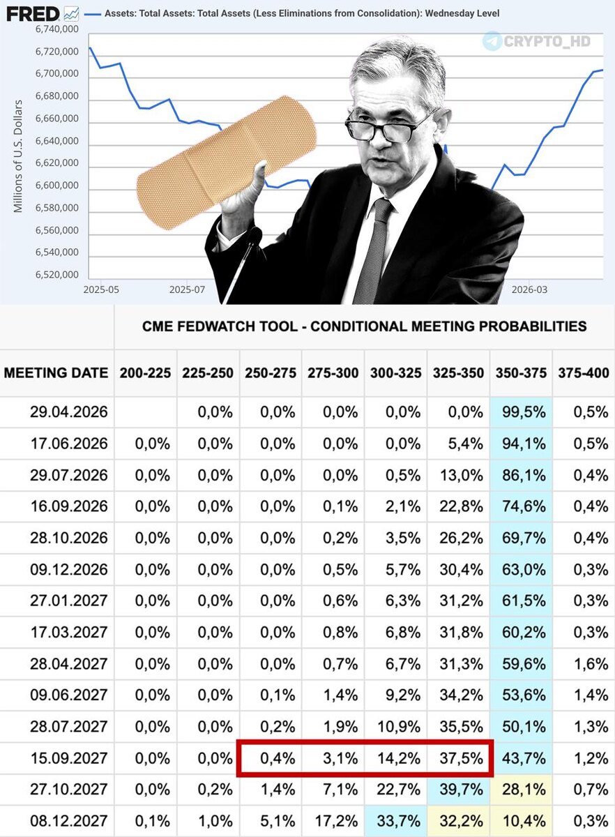 ! Сейчас у ФРС «период тишины» (председатели пока не выступают) – заседание состоится уже 29 апреля. ▪️Рыночные ожидания (ставка ФРС): - ПАУЗА до сентября 2027 года. ▪️JPMorgan: - Базовый сценарий банка – ФРС сохранит ставку без изменений на протяжении 2026 года. - Экономика США остается устойчивой, а инфляционные риски не позволяют спешить со смягчением ДКП. ▪️Goldman Sachs: - Базовый сценарий – два снижения ставки в 2026 году. - Первое снижение ожидается не раньше сентября. - Смягчение ДКП ФРС сдвинуто на вторую половину года из-за инфляционных рисков. ▪️Bank of America: - Базовый сценарий – два снижения ставки в 2026 году. - Рынок стал закладывать меньше снижений на фоне роста нефти. ▪️Morgan Stanley: - Базовый сценарий – два снижения ставки в 2026 году. - Ожидаемые даты – сентябрь и декабрь. - При устойчивой инфляции ФРС может сохранить ставку без изменений дольше. ▪️Barclays: - Базовый сценарий – одно снижение ставки в 2026 году (сентябрь). - Часть сценариев банка допускает