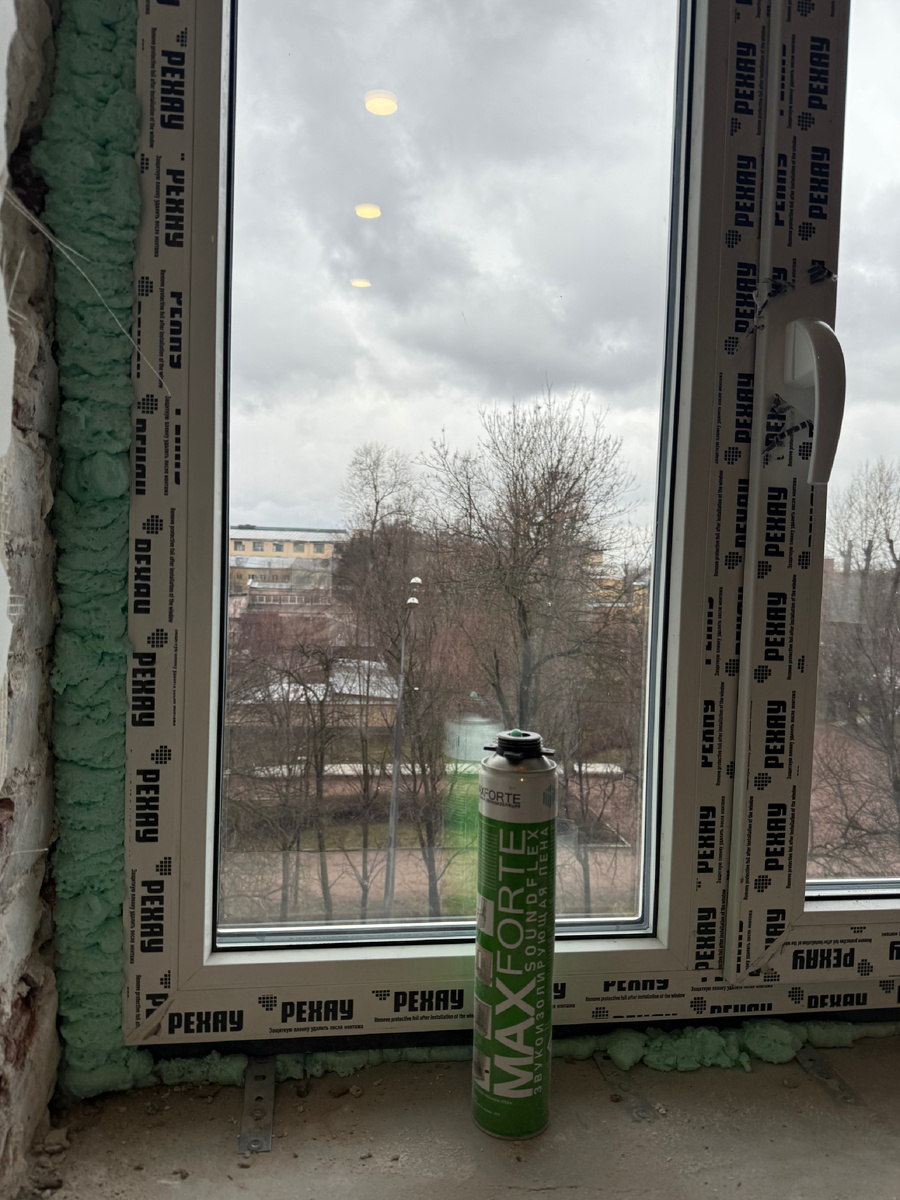Вторая причина: хороший стеклопакет, но плохой монтажный шов. Звук проходит не только через стекло — он проходит через щели в монтажном шве, через откосы, через вентиляционный зазор. Если шов не герметичен — никакое стекло не поможет.