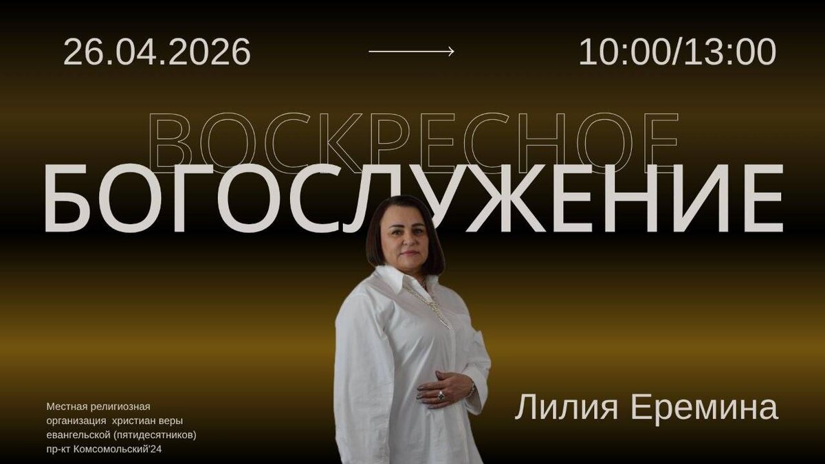 ! 📅 26.04.2026 🟡10:00 🟡13:00 📍Сургут, пр-т Комсомольский 24 📎 Лилия Еремина ✝️Обратите внимание ➡️ Время служения 10:00 - общецерковное и детское служение. 13:00 - общецерковное и подростковое служение. Rutube канал ВК страница церкви Канал в МАХ Не забудьте подписаться ✍️
