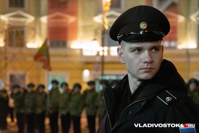 Как раз в то время, когда центр наводняют отдыхающие, стремясь отметить окончание рабочей недели, большую часть улиц перекрыли. На центральной площади и прилегающим к ней дорогам царила совсем не барная атмосфера. Тут, преодолевая холод и усталость, сотни людей в форме с 10 вечера до полуночи отрабатывали шаг, приветствие и стойку по команде «строй, равняйся». Так проходила репетиция парада в честь Дня Победы, который совсем скоро прокатится по стране громогласным «Ура!», ознаменовав победу России в Великой Отечественной войне. Это не последняя репетиция парада, на стройные ряды марширующих можно будет посмотреть 27 и 29 апреля, а 6 мая с утра пройдет генеральная тренировка. Больше фотографий опубликовали на сайте VLADIVOSTOK1.RU. Посмотреть фоторепортаж можно по ссылке. ➡️Подписаться в MAX 💬 Предложить новость