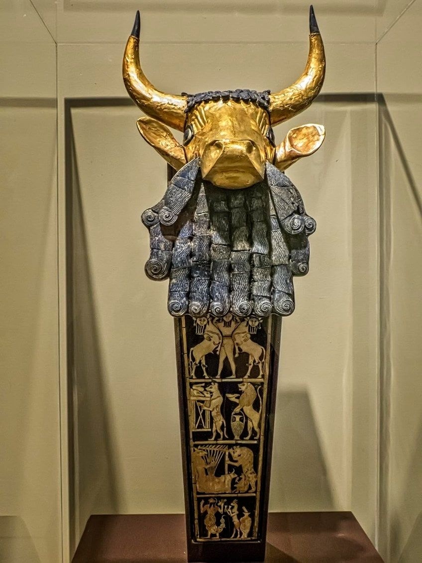 • Скрижали пиршеств: под ним — перламутровый фриз, целый эпос, где мифические существа пируют и играют на музыкальных инструментах. Это шумерский комикс, застывший в драгоценных камнях.