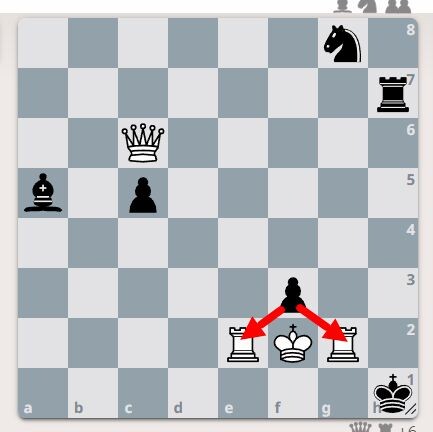 У белых под боем две ладьи.
