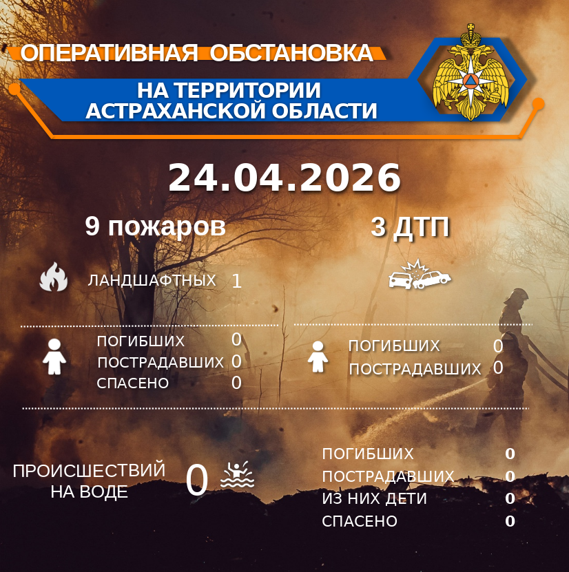 Оперативная обстановка на территории Астраханской области по состоянию на 00:00 25.04.2026