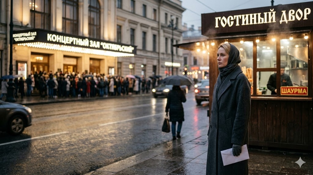 До зала добралась в шесть. Концерт начинался в семь. Она встала через дорогу, у павильона с шавермой, и стала смотреть на главный вход.