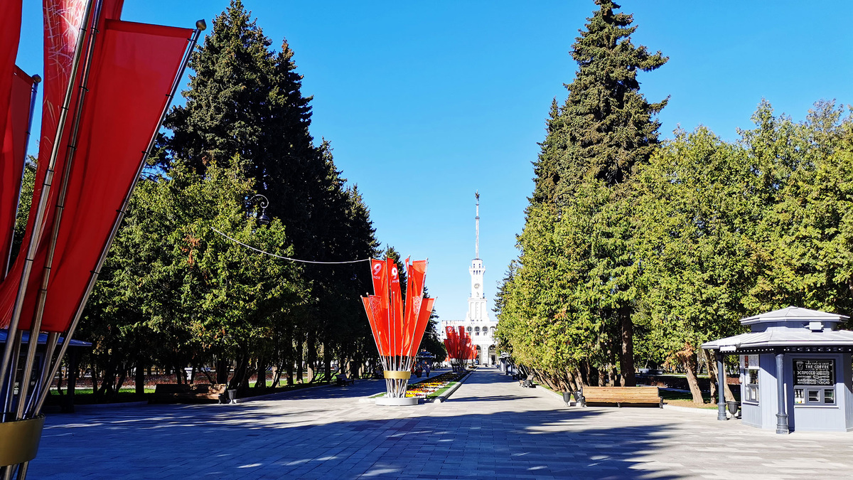 У вокзала ненадолго задержались. В общем-то, недавно открывшийся после глобальной реновации, он не оставлял шанса пройти мимо, не сделав фотографию. Особенно впечатляюще выглядела масштабная инсталляция канала имени Москвы, растянувшаяся по набережной вдоль пристани. В стольких интересных ракурсах здесь можно было запечатлеться, что и часа было бы мало!