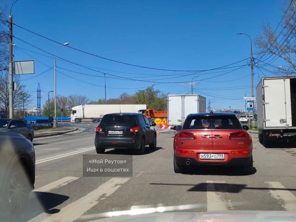 На выезде из Реутова ведутся работы по нанесению дорожной разметки