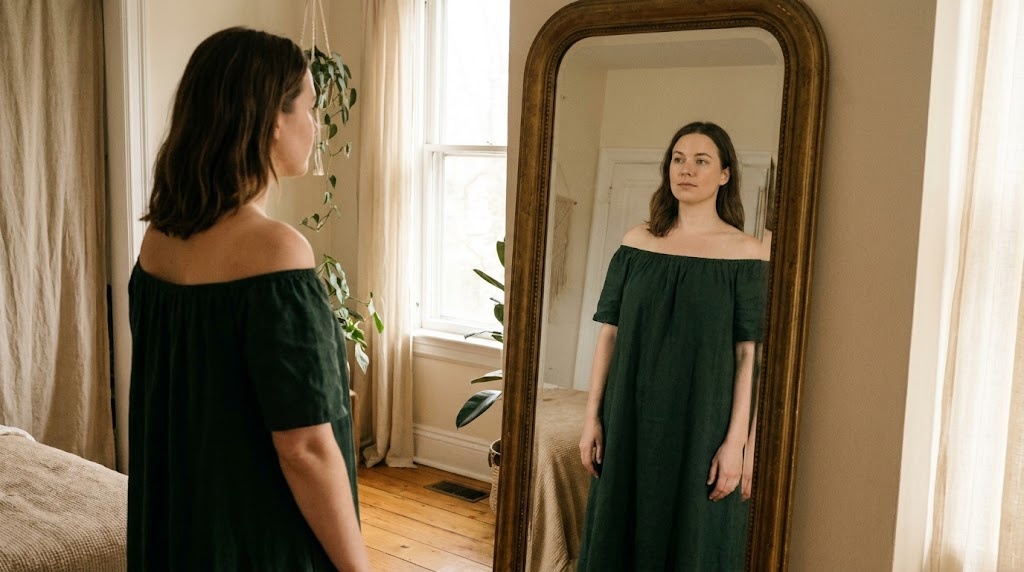 На следующий день я пошла в магазин и купила то самое платье - похожее, другого цвета. Примеряла долго. Продавщица заглянула: «Хорошо сидит». Я посмотрела на своё отражение - первый раз за очень долгое время - просто посмотрела. Без подсчётов.