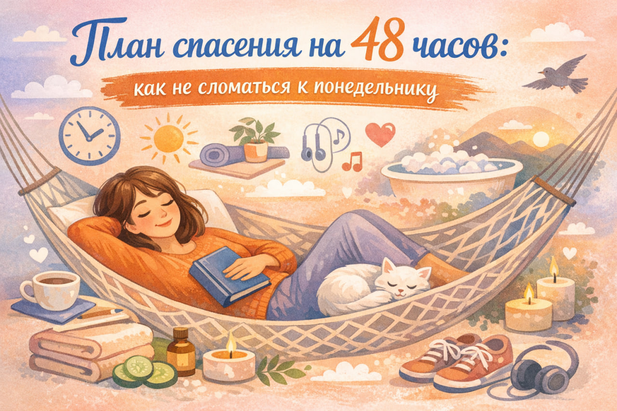 Выходные не всегда лечат усталость. Иногда они проходят, а в понедельник хочется только исчезнуть. Разберем, как за два дня не стать «новой собой», а хотя бы вернуть себе воздух, тело и тихую опору.