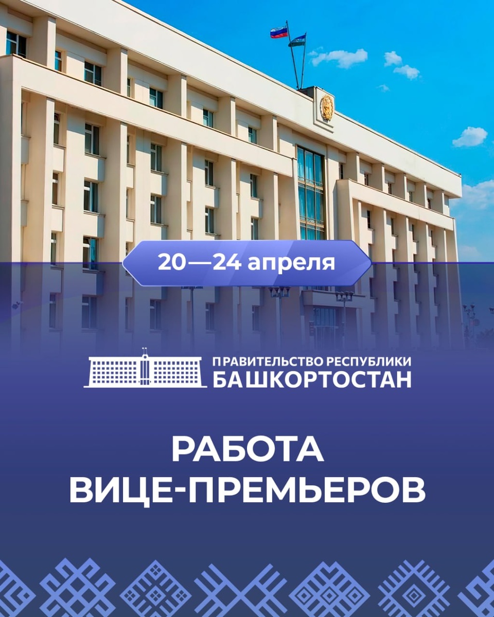 : 💬 Первый заместитель Премьер-министра Правительства Республики Башкортостан – министр экономического развития и инвестиционной политики Республики Башкортостан Рустам Муратов рассказал о текущей ситуации в рамках Нацрейтинга состояния инвестиционного климата. 💬 Заместитель Премьер-министра Правительства Республики Башкортостан Рустем Газизов провел заседание рабочей группы по развитию рынка газомоторного топлива в нашей республике. 💬 Заместитель Премьер-министра Правительства Республики Башкортостан Алексей Касьянов принял участие в очередном заседании рабочей группы по совершенствованию законодательства в сфере обеспечения безопасности детей. 💬 Заместитель Премьер-министра Правительства Республики Башкортостан – министр земельных и имущественных отношений Республики Башкортостан Наталья Полянская сообщила, что в регионе планируют выявить более 21,5 тыс. га земель для жилищного строительства. 💬 Заместитель Премьер-министра Правительства Республики Башкортостан Ирек Саг
