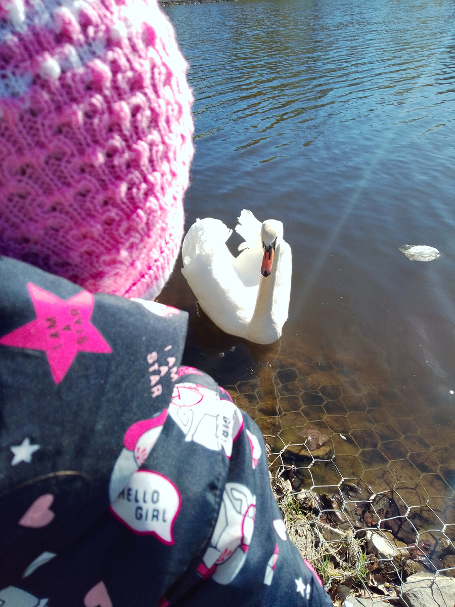 Покормили лебедя. Лизавета очень любит живность, а вот насекомых побаивается. Увидит муравья и может остановиться, пока он не убежит и даже покричать испуганно "жи- жи".