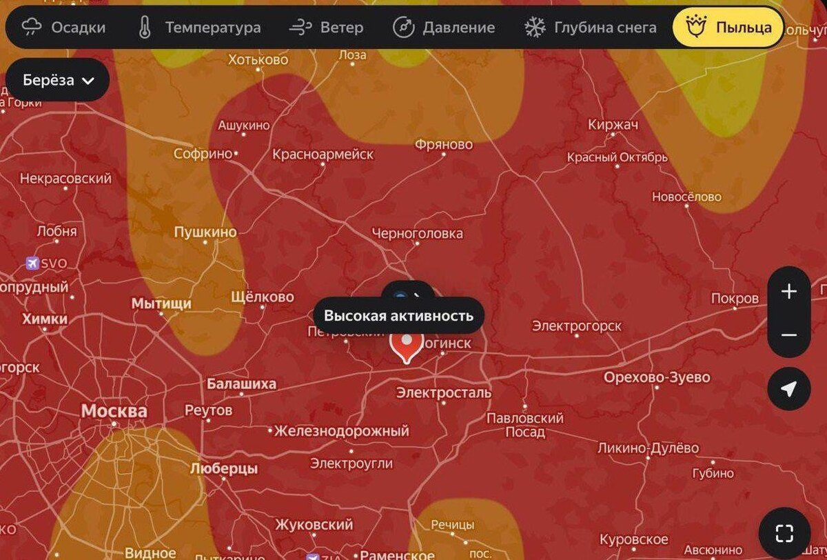 🤧 В Москве началось цветение берёзы — почти по всей столице сейчас высокая концентрация пыльцы