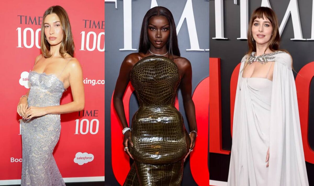 23 апреля в нью-йоркском Jazz at Lincoln Center прошла юбилейная, двадцатая по счёту, гала-вечеринка Time 100 - это ежегодный парад самых влиятельных людей планеты, который давно превратился в один из главных модных-вечеров весны. Первой появилась Хейли Бибер. Её кастомное платье Calvin Klein было создано по мотивам архивного образа с подиума весны 1992 года, который в своё время представляла модель Карен Мулдер. Платье в пол, роскошное кружево: Бибер сделала самый точный выбор вечера с точки зрения жанра. Кейт Хадсон выбрала чёрное платье-миди из коллекции Khaite осень 2026. Хадсон, которую мы привыкли видеть либо в бохо-шёлке, либо в духе голливудской классики, вдруг взяла курс на строгость с нью-йоркским акцентом. Khaite сделал из неё другую женщину: сдержанную, городскую, с характером. Дакота Джонсон, удостоенная почётного места в списке этого года, появилась в голубовато-сером платье Maison Valentino с драматическим кейпом. Это коллекция Алессандро Микеле, с которым у Джонсон