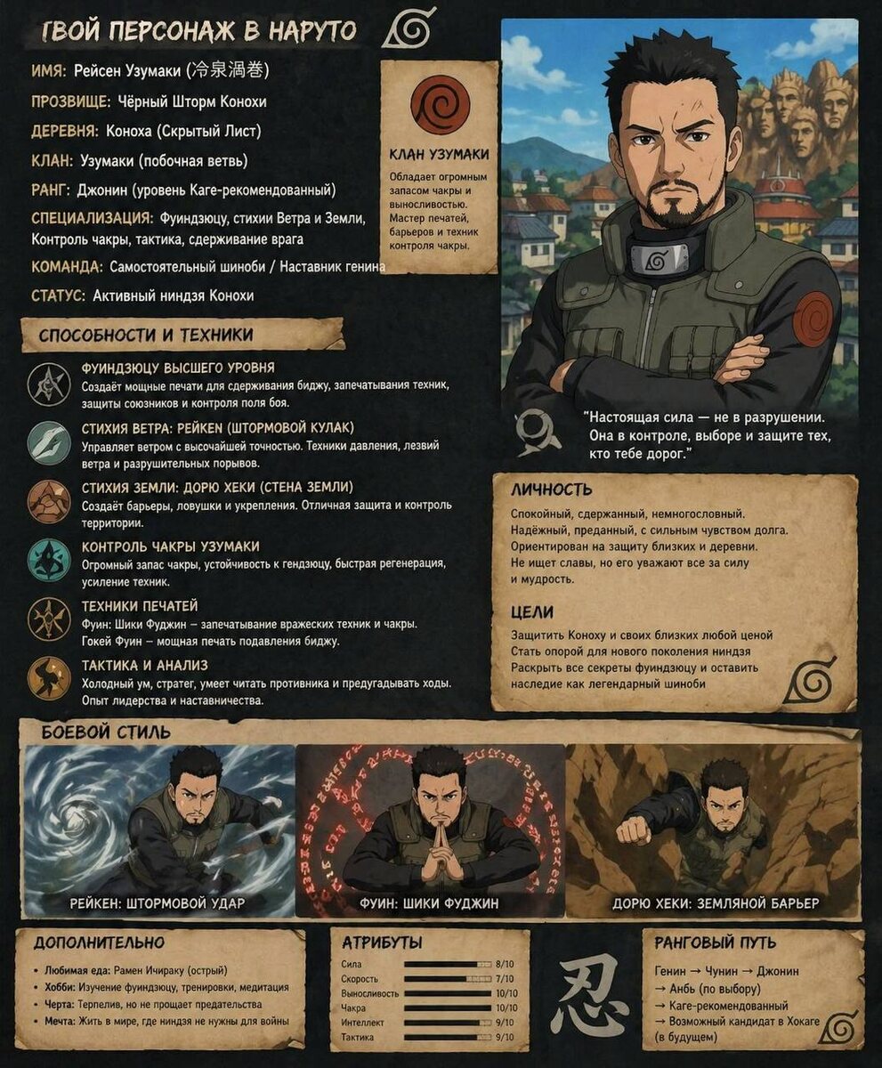 в GPT: промпт: основываясь на всей нашей переписке, напиши кем бы я был из вселенной наруто, из какой деревни, какой клан, какой ранг и способности опиши в подробностях потом когда она распишет напишите: основываясь на этом создай меня как персонажа из наруто, в стиле и рисовки Naruto Shippuuden