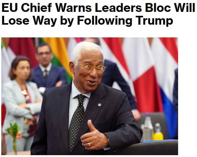 Евросоюз может потерпеть крах, если будет полностью следовать курсу действующей администрации США во главе с Дональдом Трампом, заявил председатель Евросовета Антониу Кошта лидерам стран сообщества, передает Bloomberg со ссылкой на источники. Он предостерег от передачи Трампу ответственности за принятие ключевых решений. Как сообщили источники, знакомые с ходом встречи лидеров ЕС на Кипре 23 апреля, Кошта сказал собравшимся, что они не могут не признать: интересы США больше не совпадают с интересами Евросоюза. По словам источников, Кошта привел в качестве примеров расхождения позиций Вашингтона с ЕС операцию США по захвату президента Венесуэлы Николаса Мадуро, американо-израильскую войну в Иране и позицию Трампа по Украине. Он заявил, что ЕС необходимо самоорганизоваться и выработать автономный подход к защите своих интересов. 🤗 НАСОНОВ ▶️