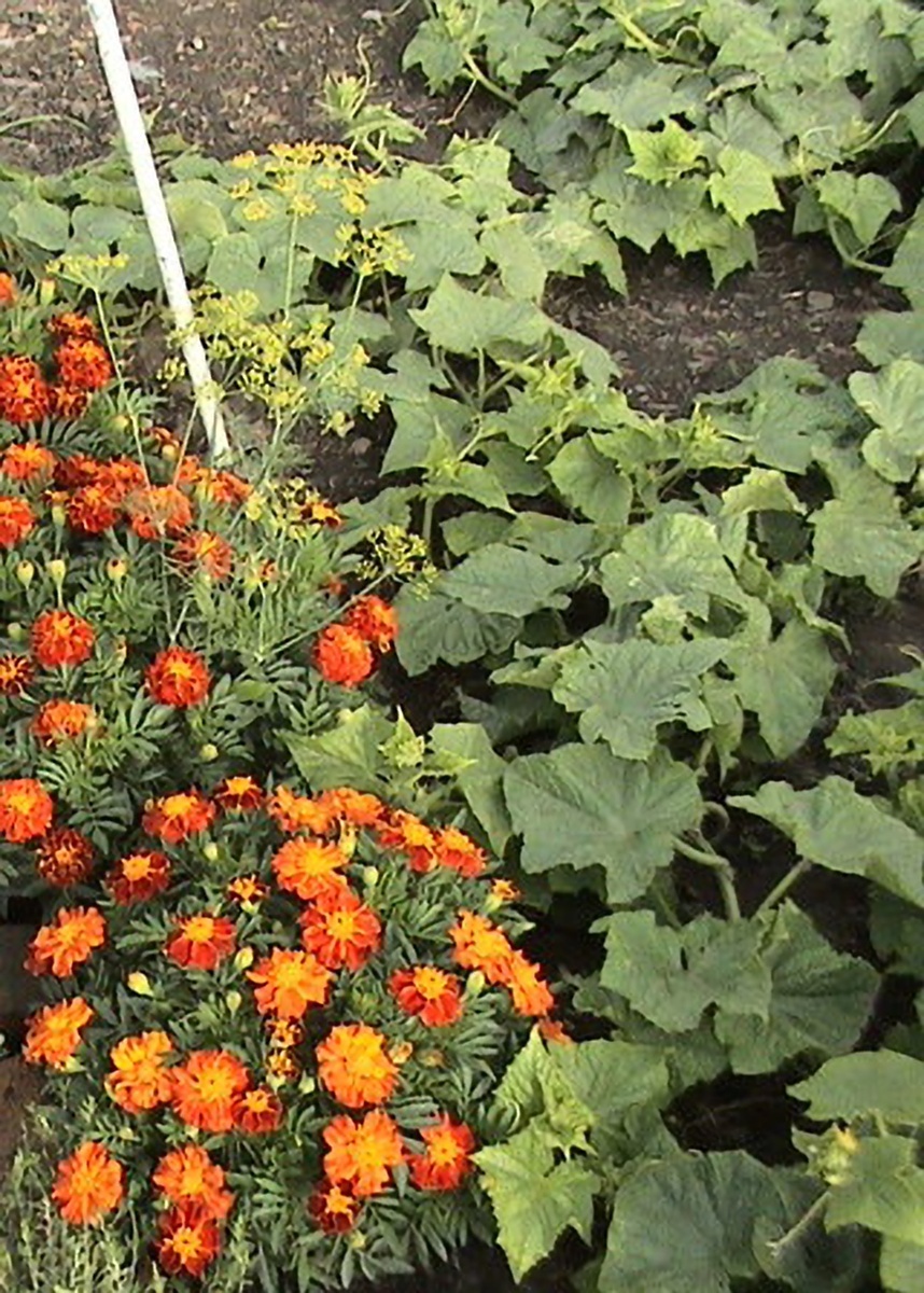 У бархатцев очень специфический запах и многие вредители овощных культур его не переносят.