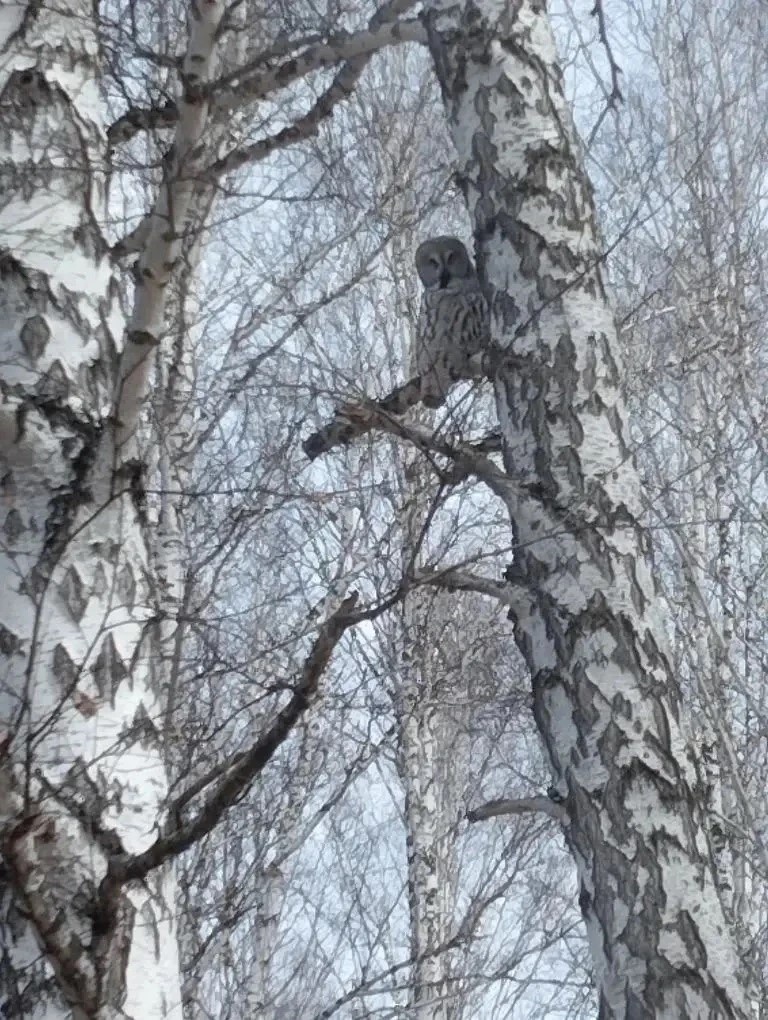 Во время патрулирования инспектор Муромцевского района смог сфотографировать бородатую неясыть