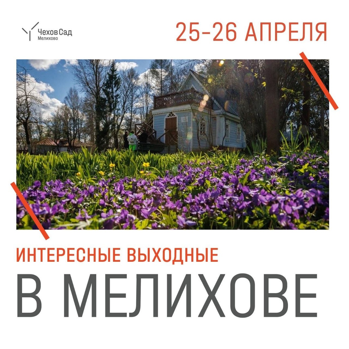 🌸 25 апреля 🌸 12:00 — программа выходного дня «Совушка». 12:00 и 15:00 — сборная экскурсия по выставке «Левитан и Чехов: поэтика пейзажа». 13:00 — сборная экскурсия «Левитан для детей: путешествие в пейзаж». 14:00 — сборная экскурсия «Чеховское Мелихово». 15:00 — экскурсия «Путешествие в Мелихово». 16:00 — экспресс-экскурсия «Чеховское Мелихово». 17:00 — спектакль «Руководство для желающих жениться». Реж. Кирилл Лоскутов Мелиховский театр «Чеховская студия». 🌸 26 апреля 🌸 12:00 и 14:00 — сборная экскурсия «Чеховское Мелихово». 12:00 — семейный спектакль «Черная курица, или подземные жители». Реж. Никита Беляев Мелиховский театр «Чеховская студия». 13:30 — программа выходного дня «Птичка-невеличка». 14:00 — сборная обзорная экскурсия по выставке «Рисунки Чехова». 15:00 — экскурсия «Путешествие в Мелихово». 15:00 — сборная экскурсия по выставке «Левитан и Чехов: поэтика пейзажа». 🟢Доступна оплата Пушкинской картой. 🏢 Музей-заповедник А. П. Чехова «Мелихово» 📍 г.о.